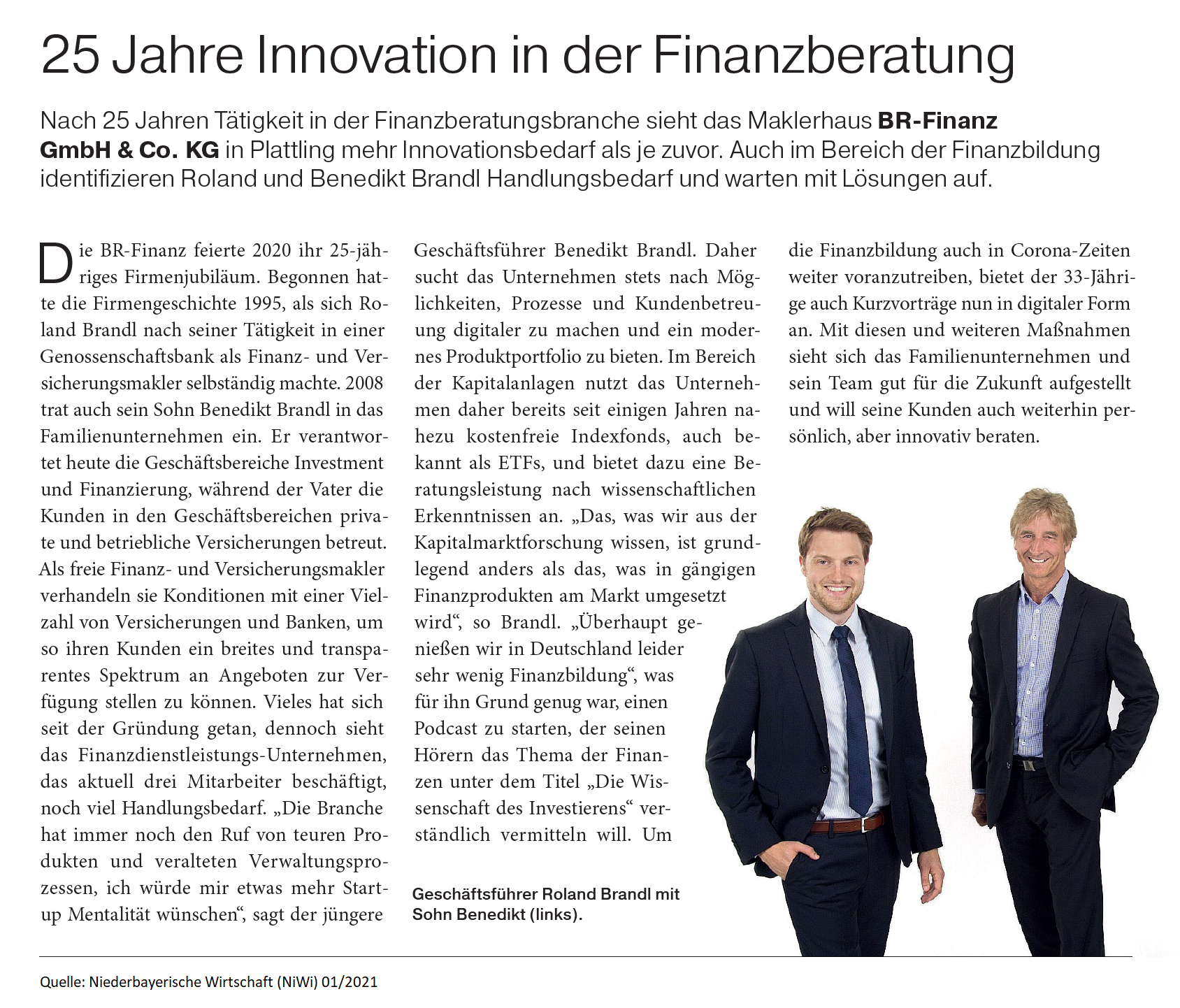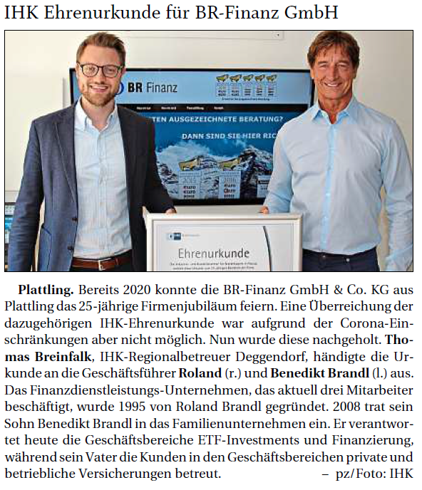 Das Familienunternehmen wurde 1995 von Roland Brandl gegründet und wird nun von seinen Kindern Benedikt, Verena und Stefan Brandl fortgeführt. Das Unternehmen bietet Beratungsdienstleistungen im Bereich Versicherung, Vorsorge, Anlageberatung und Finanzierung an mit den regionalen Schwerpunkten Deggendorf, Straubing, Regensburg, aber auch bundesweit.